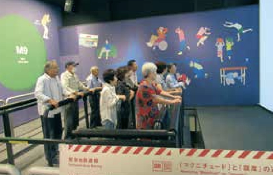 地震や水害のシミュレーション映像や、地震体験では震度5弱から強度を上げていき最後の震度7では、あらかじめ構えてつかまっていられましたが、それでも立っているのが困難なほどの強烈な揺れでした。